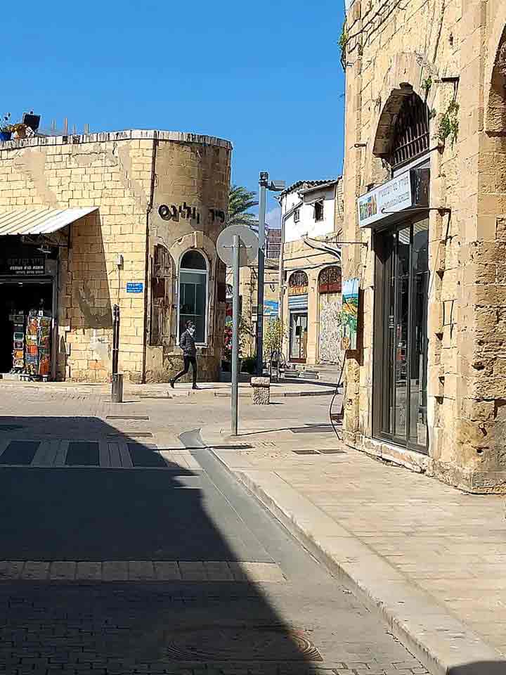 Callecitas de adoquines, angostas y sin salida. Paredes que descascaran historias. Quizás testigos de encuentros secretos, de ingleses, otomanos, árabes y judíos. Cada flor nace donde puede, una ranura o la fisura del muro. Es una música que ondea, mixta, levantándose como espesa neblina. Habla una ventana, un vidrio, una reja, un balcón, una cortina raída. Todo dice, en una lectura tácita e interpretativa. Entre el ayer y el hoy, vuelvo la mirada al ensueño de un Yafo mágico. Tan parecido a un cuento, para vivirlo y relatarlo». LGL