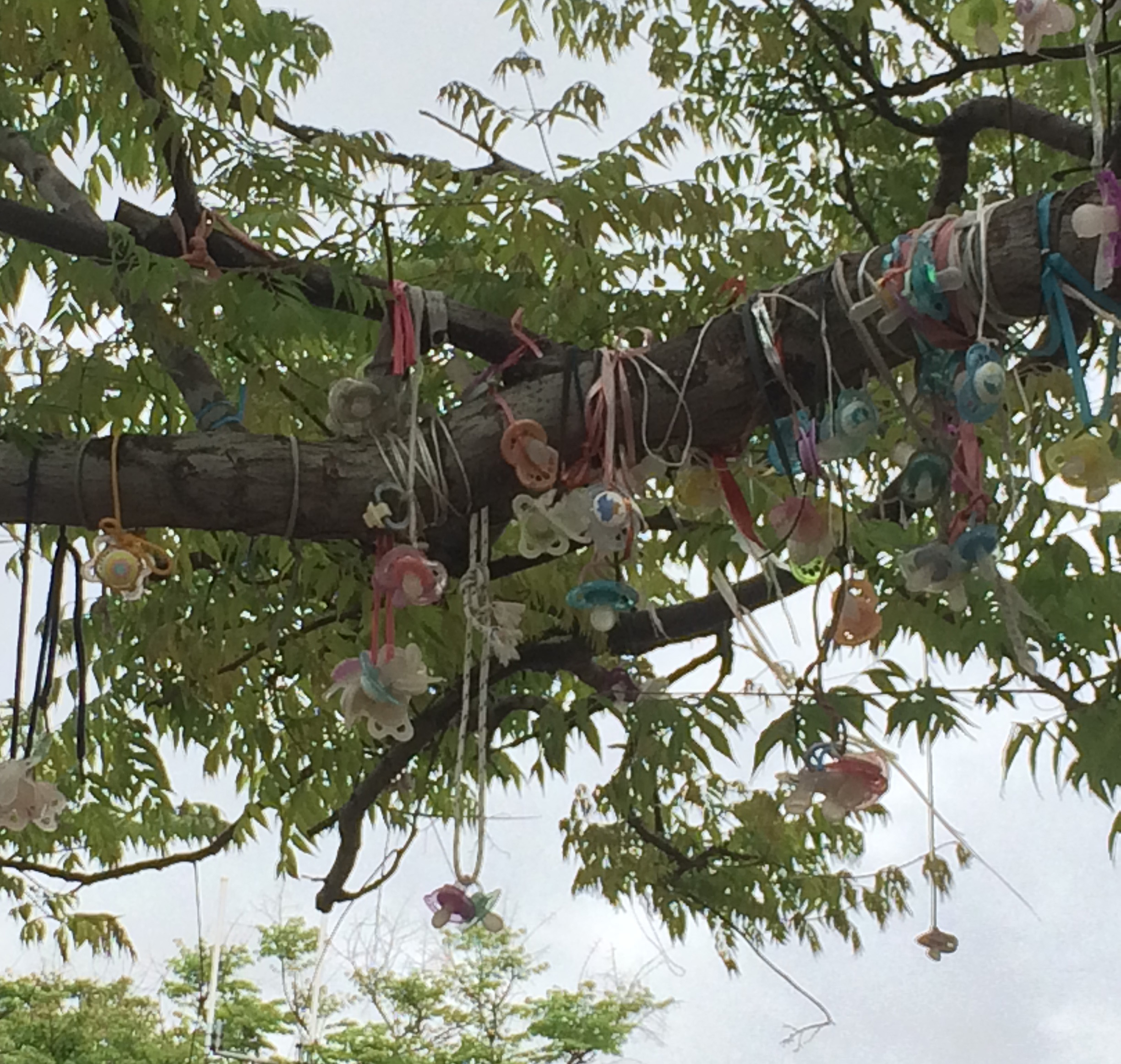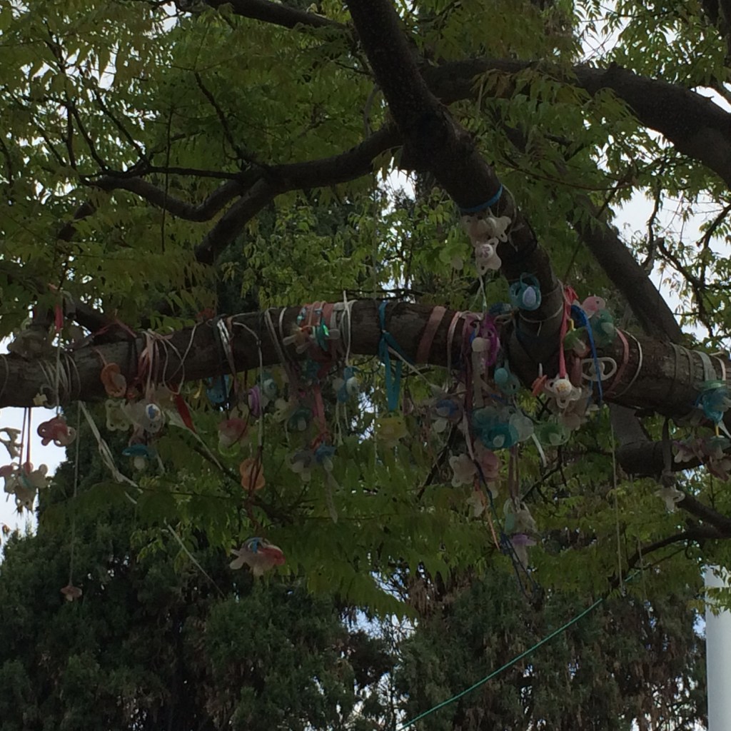 Como amante de los ritos de pasaje que soy, el árbol de los chupones me parece una genial idea para dejar atrás un objeto tan significativo a esa edad. El niño aprende que para crecer hay que dejar ir cosas, algunas queridas pero que ya no necesitamos. Sin traumas, sin tragedias, divertidamente, y si es posible, con música y comida. Solo en Israel.
